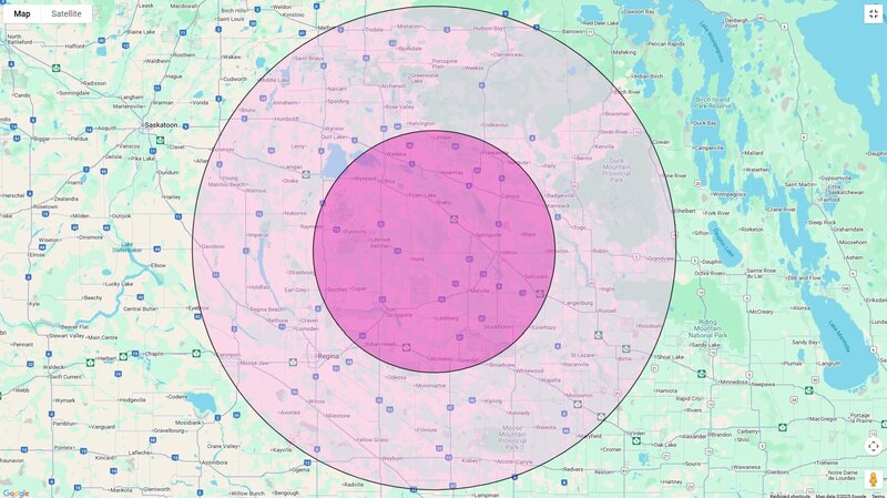 Example: Wedding at Assessippi, MB (125 km away) = $250 delivery fee.