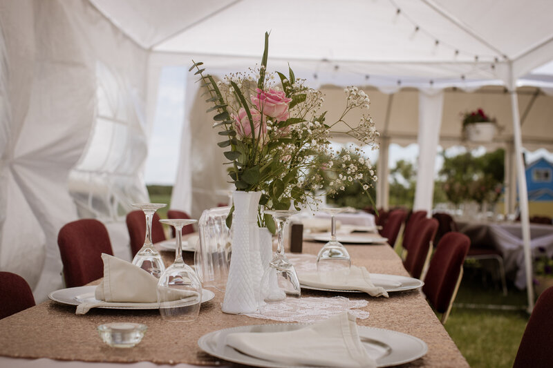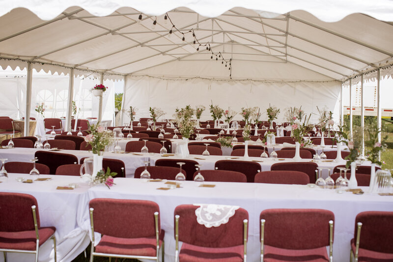 Just a quick note: While most items are included in your flat rate, a few specialty pieces (i.e. the party tent, tablecloths, and wine glasses) are considered add-ons. These items are optional extras since not every couple needs them, and they require a bit more care and handling. If you’d like to include them in your rental, we’ll be happy to go over pricing and details.